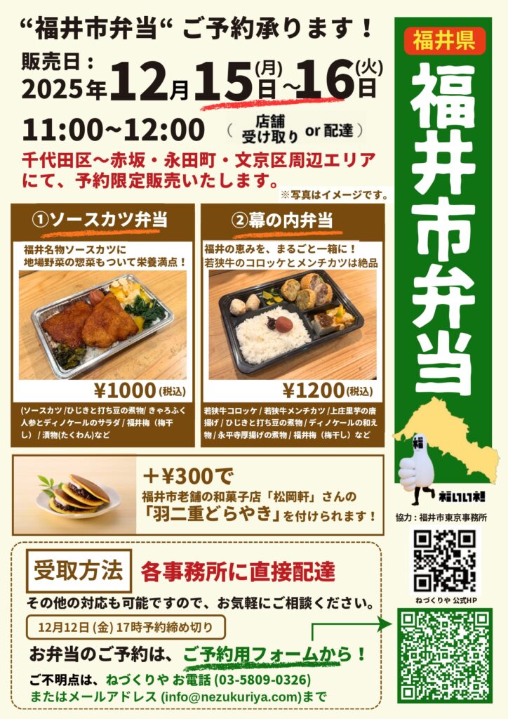 2025年12月15日(月)〜16日(火)に福井市弁当を販売いたします。