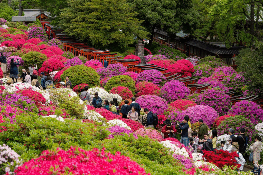 つつじの名所として知られる根津神社で、毎年4月1日から1ヶ月かけて行われる文京つつじまつり。